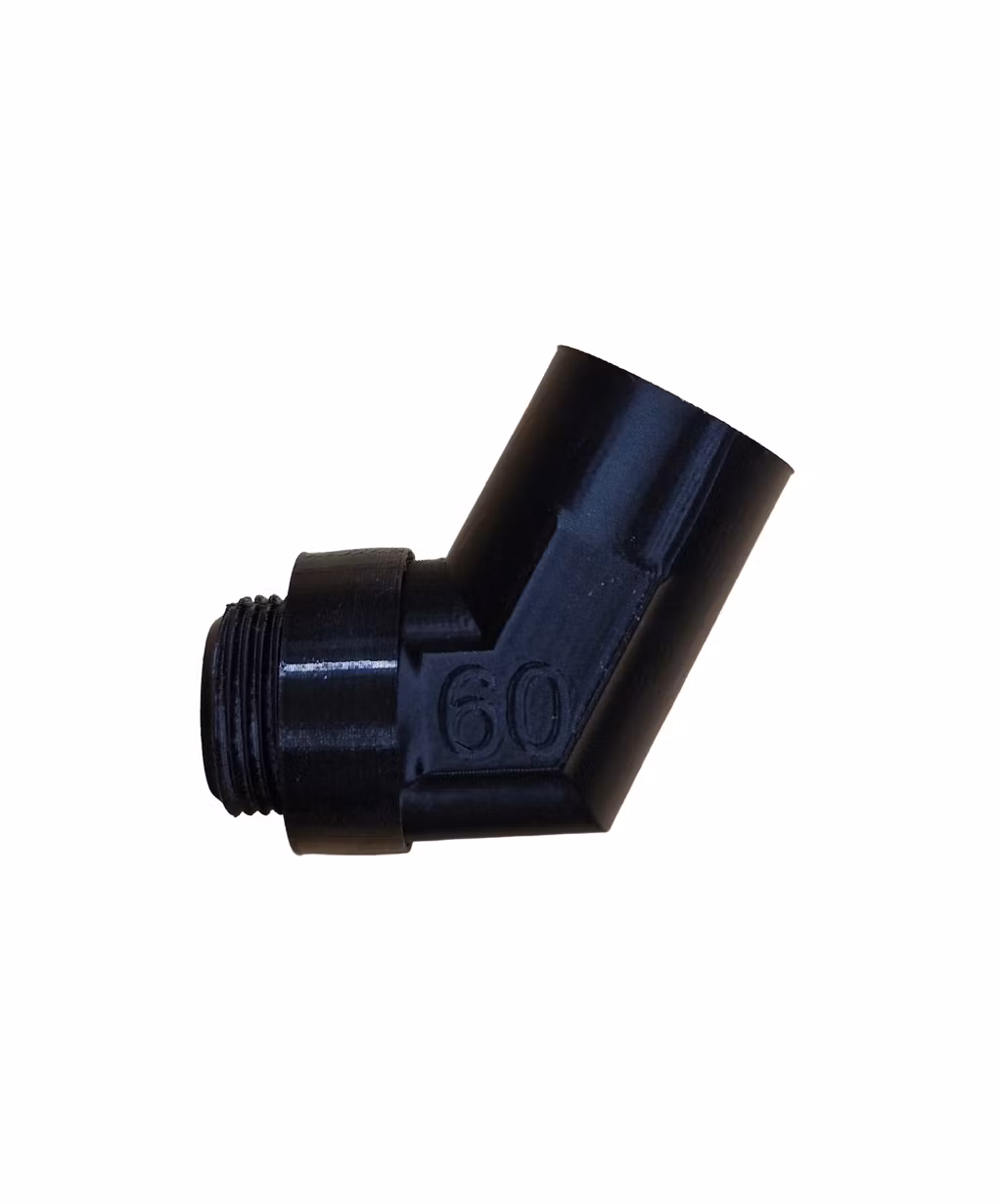 En 60 graders adapter som passar till alla apportkastare i Airlauncher Pro Systemet. Möjliggör att kunna vinkla skjutrören 60 grader åt vilket håll som helst, den kan vridas 360 grader med hjälp av en specialtillverkad gummitätning, perfekt om man vill sprida dummisarna på olika ställen.