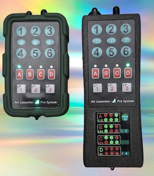 Hjärtat i Air Launcher Pro Systemet. Liten - enkel - lätt. Ingen lång antenn som är ivägen, vår sändare har en specialbyggd endast 15mm lång fast gummiantenn. Denna lilla sändare som är helt konstruerad och byggs av oss är utrustad med en microdator som möjliggör att kunna styra alla produkter i Air Launcher Pro Systemet, både nuvarande och framtida produkter, så det är den enda sändaren du behöver till alla produkterna. Den kan styra minst 4 produkter samtidigt, men beroende på vad du för tillfälligt använder så klarar den upp till 32 produkter samtidigt. Den styr även 3 olika ljud och dubbelskott med en knapptryckning. Den använder en sofistikerad överföringsteknik som är helt störningssäker, och räckvidden är minst 2km, och det bästa av allt som alla andra har problem med är att du kan ställa produkterna helt dolt som i diken, bakom berg, hus, buskar, träd och du har alltid full täckning.